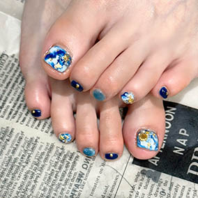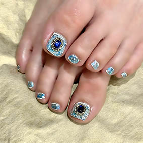 ブルーの宝石ネイル!足は派手目が可愛い♪ |