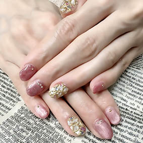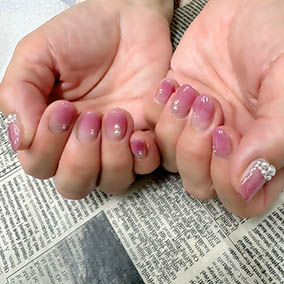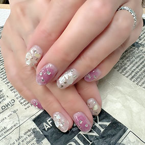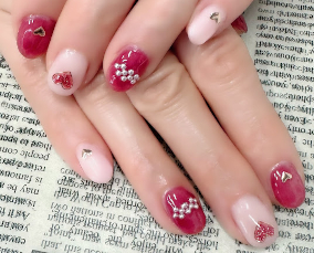 JerryRedとピンクの相性パールアートが可憐。 |