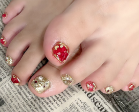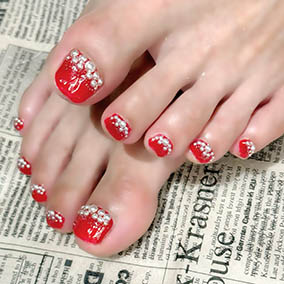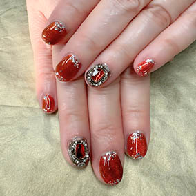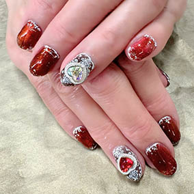 赤とオーロラストーンビジューアートで華やかに。 |