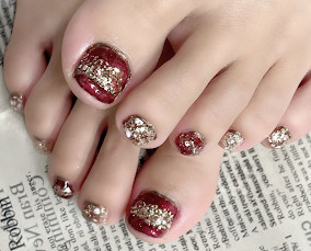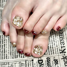 紅小豆グラデーションに上品なパールアート。 |