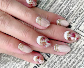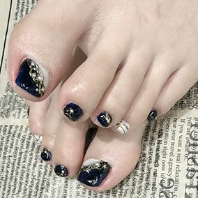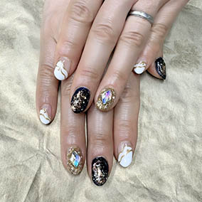 ブラックネイビーと白オーロラに金彩プラスパールアート。 |
