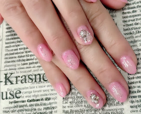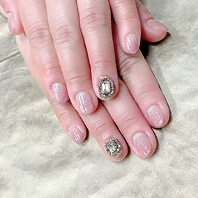 シンプルなピンクラメにキラキラ宝石ビジュー! |