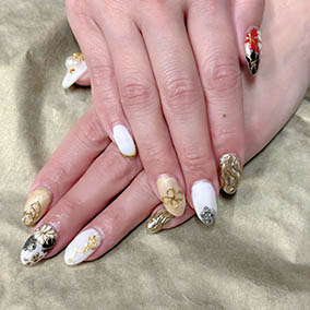 和のデザインを取り入れた和モダン開運ネイル♪ |