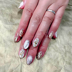 ゴールドシルバーの大きめホログラムに親指はサファイア。 |