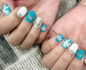 ブルー系な人形の鱗ネイル。 |