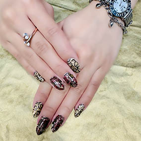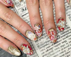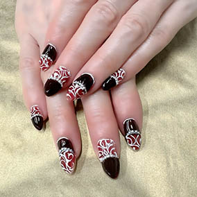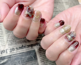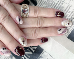 10月定額ネイル。ボルドーカラーのシノワズリアート。 |