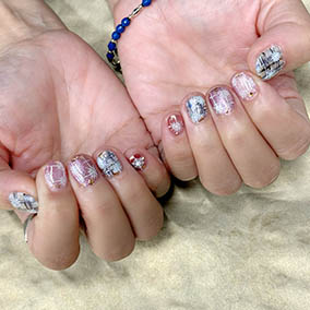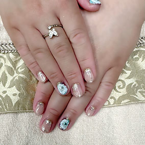 8月デザインのニュアンスネイル。優雅な雰囲気に。 |