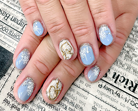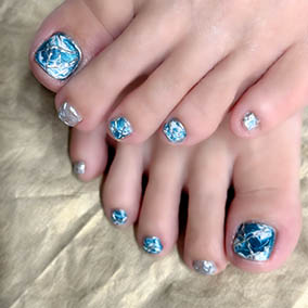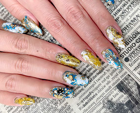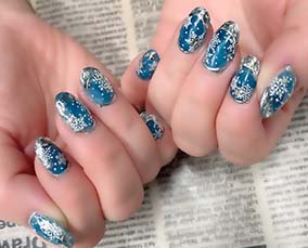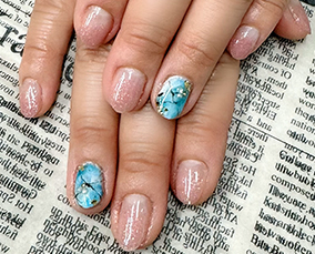 ブルーのフルイドアート。絵画技法のネイルアートです。 |