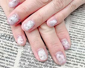 ご旅行前にご来店。3月デザインのニュアンスネイル。 |