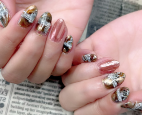 定額ネイル。ピンクブラウンニュアンスアート。 |