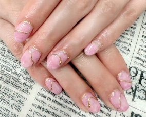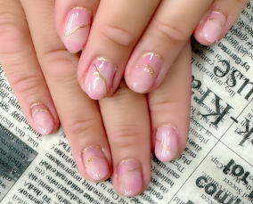 淡いニュアンスピンクに金彩でエレガントに。 |