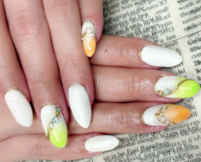 春を感じるカラーに!白に黄緑、オレンジグラデ♪ |