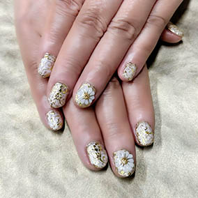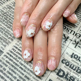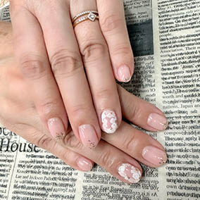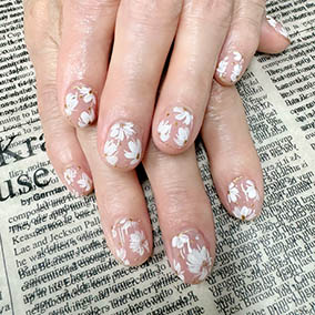 薬指に白花アート。人気のフラワーアート。 |