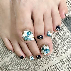 ジルコンブルー大好き。花手水ネイルで涼しげに。 |