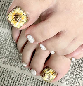 薬指は夏らしいひまわりネイル♪可愛いです。 |