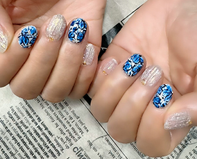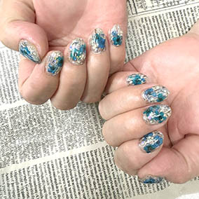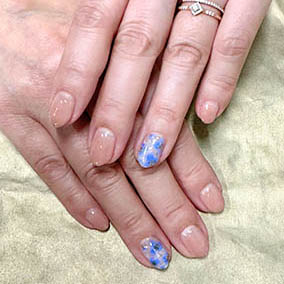 10月定額デザイン。ブルー系ニュアンスネイル。 |