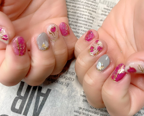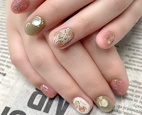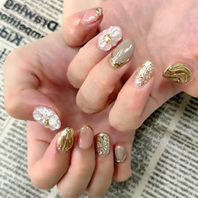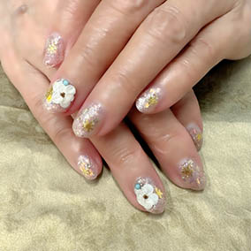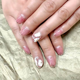 ゴールドフラッシュにピンクゴールドナゲットと白で爽やかに。 |