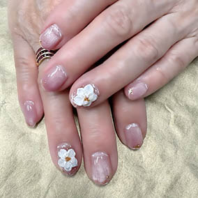 薬指白花ネイル。可憐な感じになりました。 |