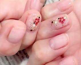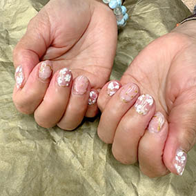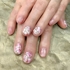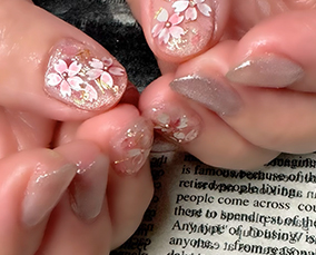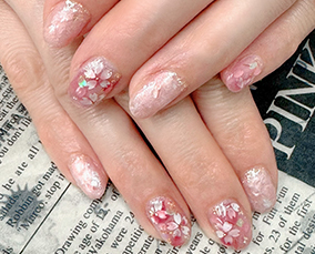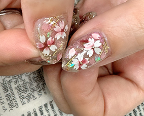 淡い色合いの桜ネイル。肌馴染みよいです。 |