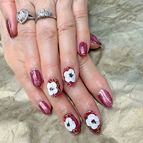2025年の開運カラーを使用したフラワーネイルアート。 |