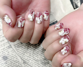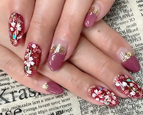 桜ネイル小豆色系で作りました。お着物にも似合いそうです♪ |
