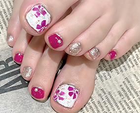 春を感じるピンクフットネイル |