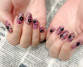 パープルピンクにblack花小悪魔風ネイル(^^♪ |