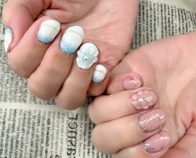 定額ネイル!ニュアンスフラワーのブルーバージョン。 |