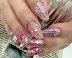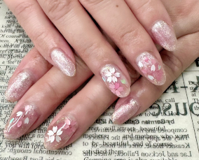 みんな大好き桜ネイル。ベースのラメがキラリ♪ |