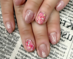 春が待ち遠しいピンクフラワーネイル。 |