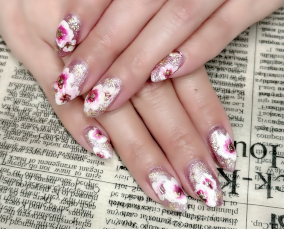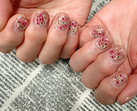 お花敷き詰めネイル♪華やかで素敵ですね(^^♪ |