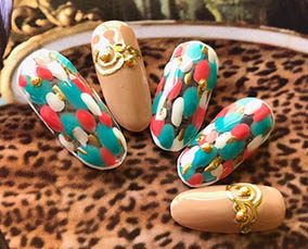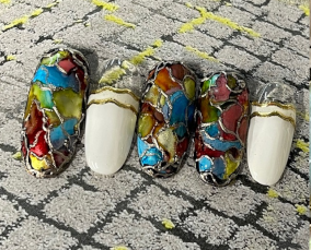 カラフルなステンドグラスネイル。 |