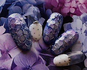 紫陽花が瑞々しい爽やかネイル |