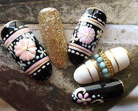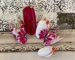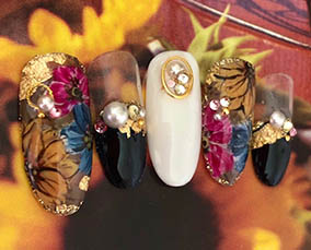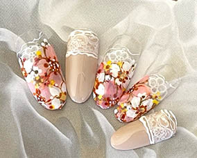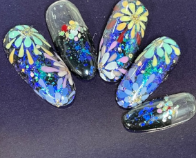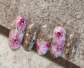 華やかに咲き誇るフラワーネイル |