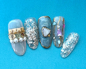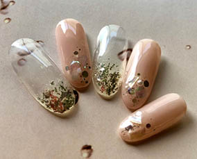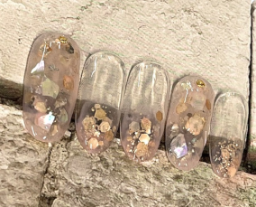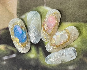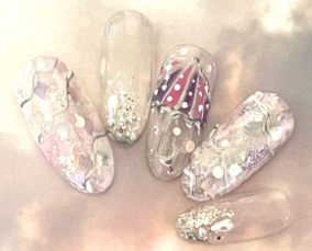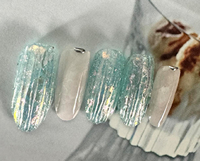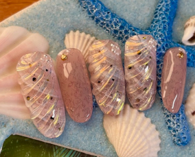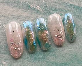シェルとグリッターの輝きネイル |