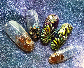 多彩に輝くオーロラネイル。 |