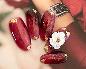 立体的なフラワーが指先を飾ります。 |
