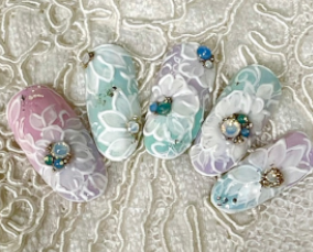 シャーベットカラーに繊細アート |
