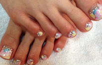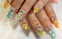 | 春色ネイルです♪ブリオンやストーンでキラキラ☆