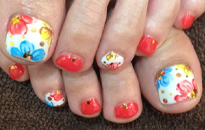 春らしいパステルのフットネイル♪足取り軽やかに★ | ピンクの2色塗りにパールをあしらって、ポイントでプルメリアをのせました♪