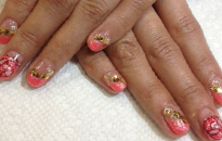| 上品な大人の女性を思わせる、オレンジ系ピンク×バラアート! |