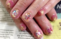 ゴールド草花ネイル。 |
