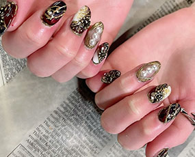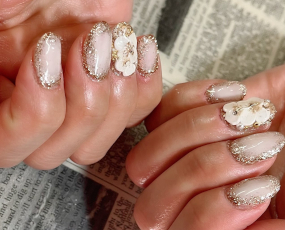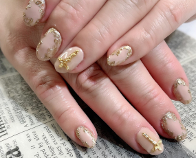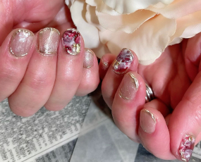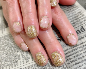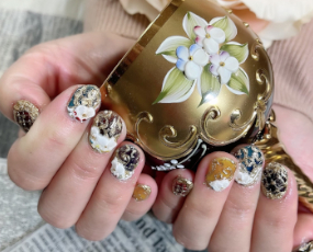 定額ネイル!メタルゴールドの草花アート! |