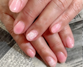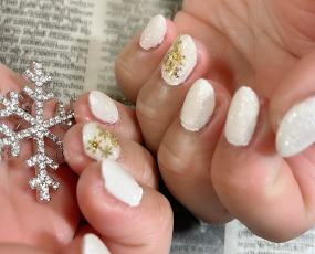 白にホワイトラメ。薬指だけゴールド雪。 |