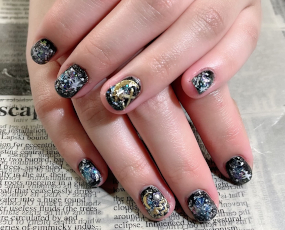 アゲハジェル小ラメにうねうねニュアンスミラーアート。 |