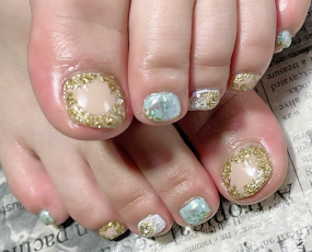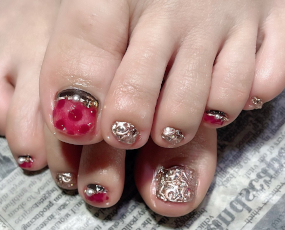 定額デザインをフットにしました。メタルアートで開運ネイル! |