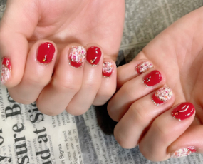 年末年始縁起良いネイルにしたい!ピンクレッドと白花アート。 |