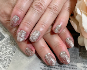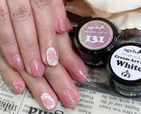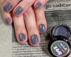 定額ネイル。新色!アゲハジェルのクリームジェルの下はシルバーマグネット。 |