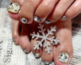 12月定額ネイル💅手足金と白の雪! |