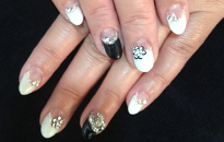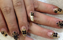 黒とお花柄のベースにゴールドでアートした大人レディネイル! |